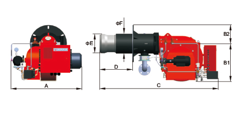 BT180/250GHC漸進式/比例調節重油/燃氣雙燃料燃燒器