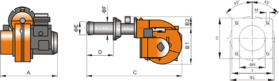 | Model | A | B1 | B2 | C | D | E | F | N | L | I(I1) | M |
